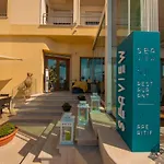 Hotel Riva Del Sole hotel tilbyder 23 værelser med udsigt over havet. Der er også et mini køleskabsbar, en personlig værdiboks og et skrivebord.